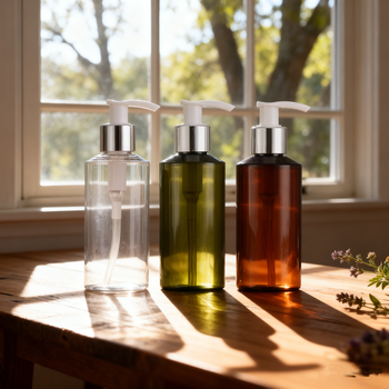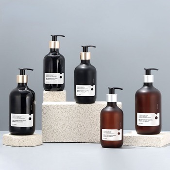250ml 300ml 500ml 앰버 컬러 PET 빈 펌프 샤워 오일 병 목욕 오일 병-개인 관리를위한 누출 방지