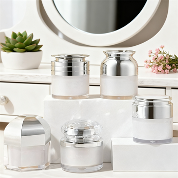 Frascos de crema cosmética de doble pared de plástico vacío de lujo 50g 50ml botella de crema facial para el cuidado de la piel con tapa plateada
